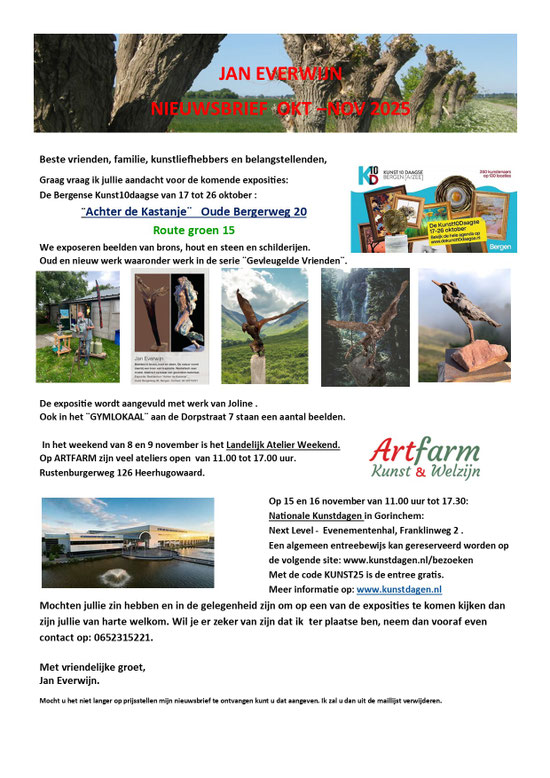 Mochten jullie in de tussentijd interesse hebben om werk te zien, dan staat mijn atelier op Artfarm altijd open. Als je wilt dat ik er bij ben: Wel even afspreken! 0652315221.